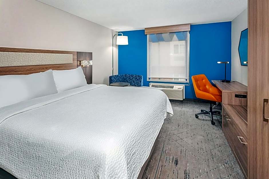 This wheelchair-accessible suite features cable TV and a refrigerator.